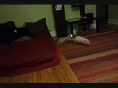 ミニ豚とネコの初顔合わせ