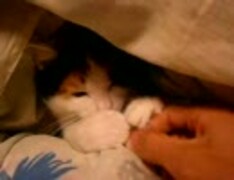 布団に埋れながら遊ぶ猫。みや◆MIYA Cat