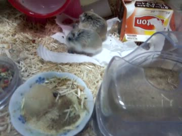 ハムスターがキッチンペーパーをほぐしているのを見守るだけ2