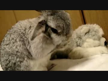 足をペロペロ、顔をフキフキするうさぎ
