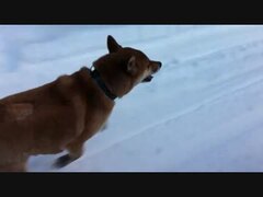 スノーモービルと柴犬