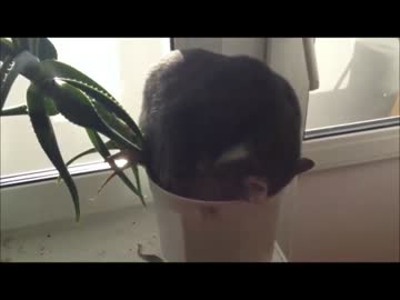 プランターの上で寝てる猫がかわいい