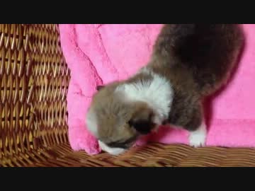 コーギー政宗君、目が開いて、遠吠えしました。