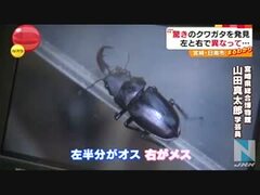 左側がオス・右側がメス、珍しいクワガタ発見