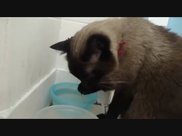 手を使って水を飲む猫(*´ڡ`●)