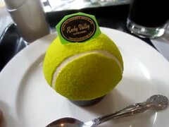 テニスボールの形のまんまなNIKKI Cafeの テニスボールケーキ