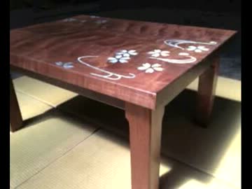 砂澤陣作 「桜と川」<卓袱台:ちゃぶだい>