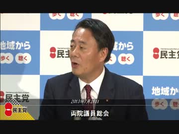 H25/7/26 民主党両院議員総会【海江田代表挨拶&細野幹事長報告】