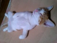 仰向け寝でひくひくする子猫