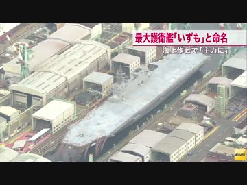 海自最大ヘリ搭載護衛艦の進水式「いずも」と命名