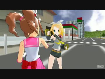【MMD】やよいちゃんとリンちゃんがストリートファイト【アクション】