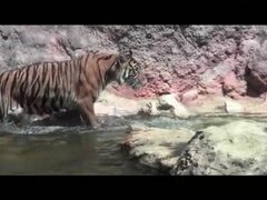 水浴びするスマトラトラ