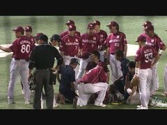 楽天投手レイの顔面に打球が直撃!右頬骨骨折