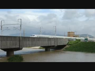 【台風18号】新幹線700系、増水した川の上を走行。