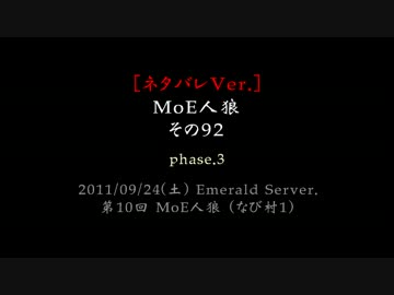 [ネタバレVer.] MoE人狼【092 - 3】 20名(狼3.狂/狐/占.霊.狩.共2.村10)