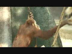 テナガザルがオランウータンをからかって遊ぶ