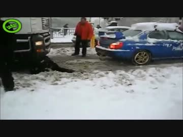 雪道でスタックした大型トラックに完全勝利したインプレッサUC