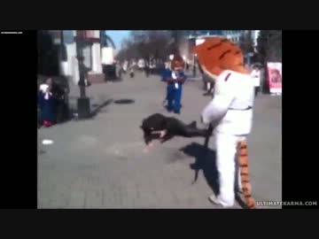 【仏】可愛い動物柔道家マスコット君、悪戯して来た青年をブン投げる