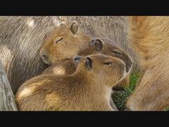 仔カピバラすやすや その後災難、でも寝る