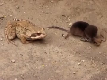 親ガエルの前で子ガエルを食べるトガリネズミの最期