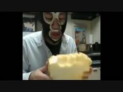 横山緑 パイナップルをカットする