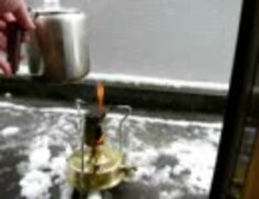 雪が降ってきて暇だったので、ベランダでお湯を沸かしてみた