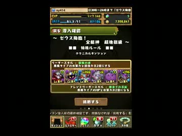 パズドラ ゼウス降臨!超地獄級 逆心の神魔王x 奈落の狂皇子 ノーコン