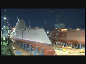 開発中ステルスミサイル駆逐艦ズムウォルト級ミサイル駆逐艦の乾ドック
