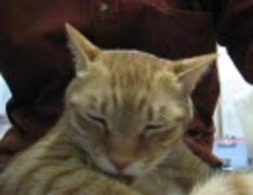 膝の上で くつろぐ猫
