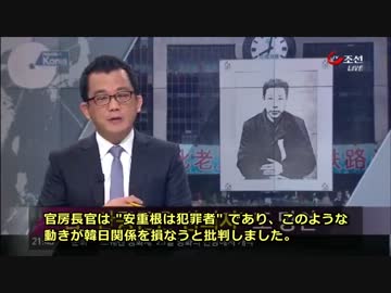 バ韓国報道 日本の菅官房長官が中国に設置される安重根石碑に不快感