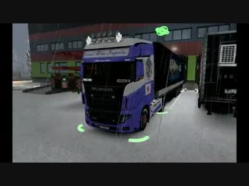 ETS2 SCANIA R700 "Virtual Blue Impulse" skin 雪道 Warszawa→Chania