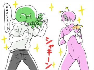 【手描き】宇宙人コンビでスタイリッシュいちまんじゃく【学怖】