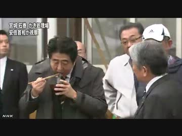 安倍首相 被災地のかき処理場視察