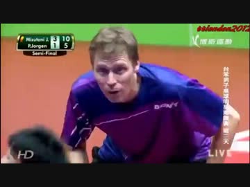 卓球 45秒のスーパーラリー (水谷隼 VS ヨルゲン・パーソン)