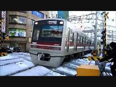 新京成N800形N828編成通過 大雪の翌日