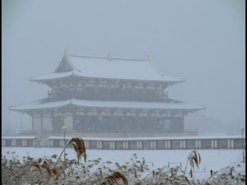 平城宮跡、雪化粧する