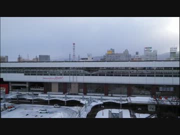ホテルから朝の福島駅新幹線ホームを撮ってみた
