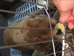 乾燥バナナを乱暴にガツガツ食べる垂れ耳うさぎ