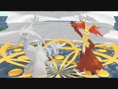 【MMD】レシラムとマフォクシーがハッピーシンセサイザを踊ってくれたよ!