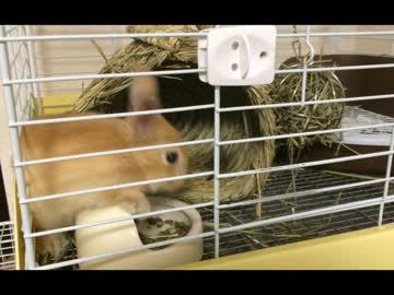 変な体勢で餌を食べる仔うさぎ