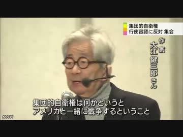 大江健三郎さんら「集団的自衛権」の行使容認に反対集会