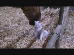 上唇で猫の頭をいいコいいコしてあげる馬