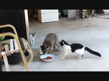 猫のエサを盗んで逃げるアライグマの姿に爆笑!