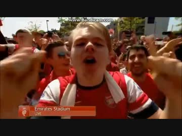 Arsenal Players chant and sing with the arsenal fans