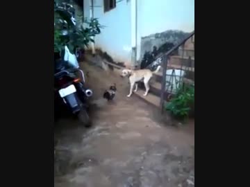 ニワトリVS犬!