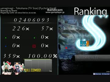 【osu!】 やなぎなぎ-トコハナ[Hard](mod:HD,DT【プレイ動画】