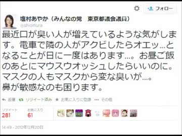 塩村文夏議員がtwitterで問題発言!?