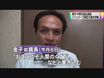 中野区議 「ツイッターに暴言で辞職」