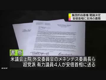 米有力議員 「安倍首相に決定支持の書簡」