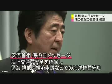 安倍首相 海の日のメッセージ 「法の支配の重要性」強調